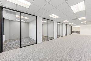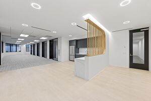 The all-new Suite 210 features six private offices, one meeting room, a break area with premium design finishes, specialty lighting, glass doors, floor-to-ceiling windows, and access to on-campus dining, fitness and conferencing amenities.