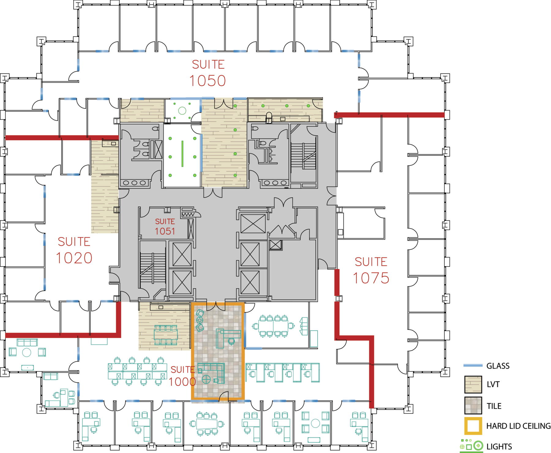 Build your brand in expertly designed suites with high-end finishes and furniture options.