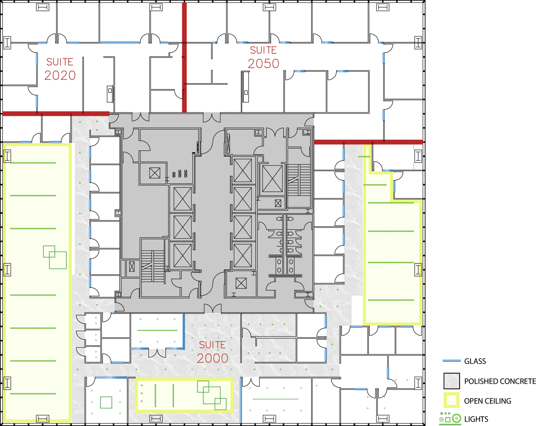 With five private offices, two meeting rooms and flexible open floor space, Suite 2020 features floor-to-ceiling windows offering sweeping views and access to on-site and nearby amenities.