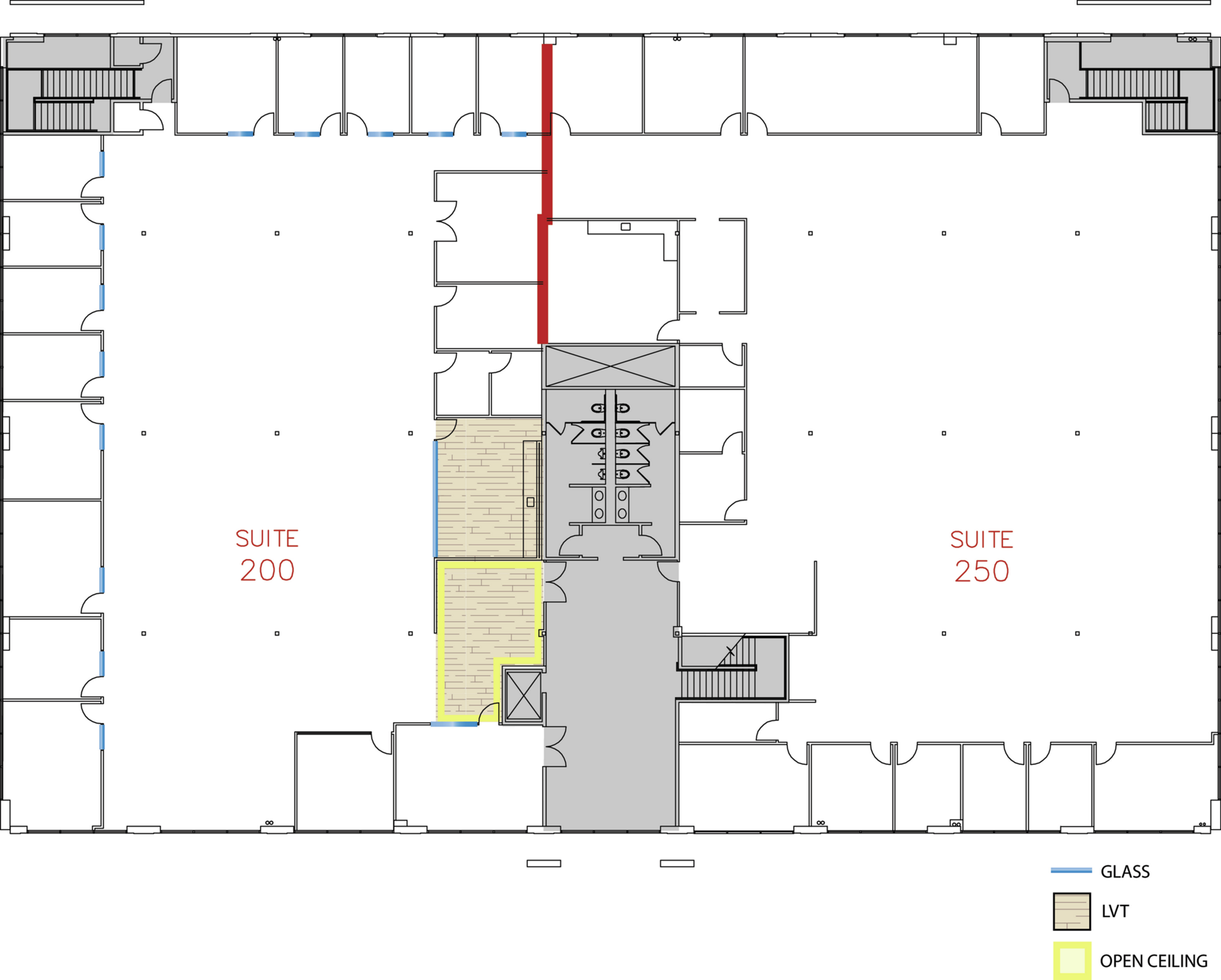 Suite 200 is an expansive workspace with thoughtful details including modern finishes, an enclosed kitchen and a welcoming reception area. Large windows let in natural light to ample open workspaces and private offices.