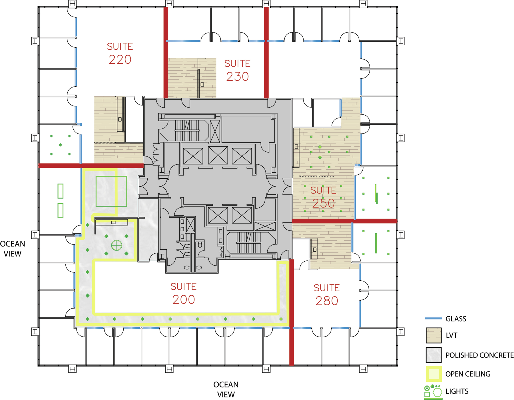 This fully furnished, open workspace invites collaboration in a prestigious high rise campus with upgraded amenities. Floor-to-ceiling windows invite natural light and an enclosed kitchen provides addition room to connect.