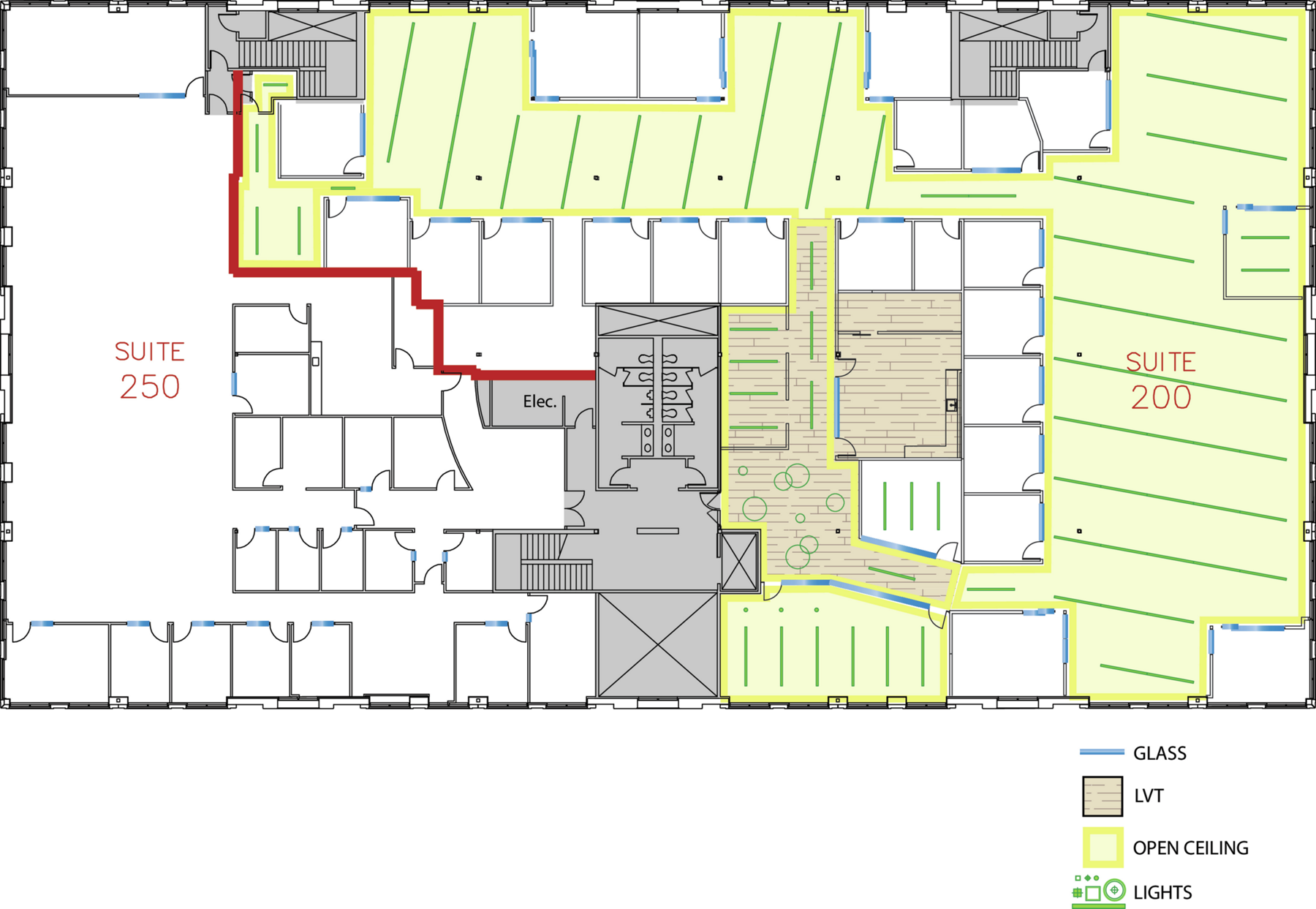 Suite 250 is a spacious workspace with windowlines offering ample natural light plus convenient access to Market Place Center’s in-demand on-campus amenities and nearby conveniences.