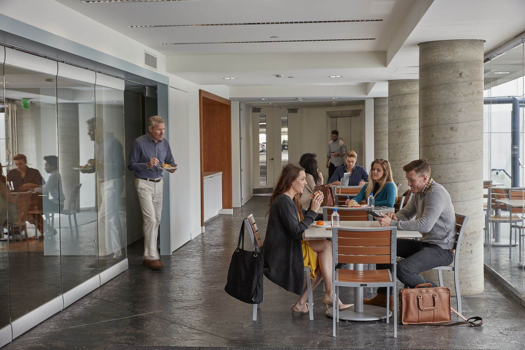 Inspire fresh ideas in comfortable outdoor workspaces with full connectivity where colleagues collaborate and socialize.