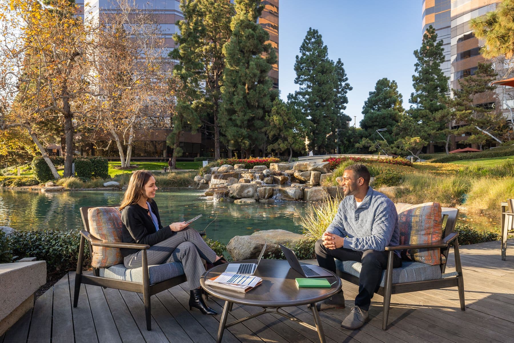 A lush, park-like atmosphere encourages team connections, cultivating a collaborative environment that fuels creative breakthroughs.