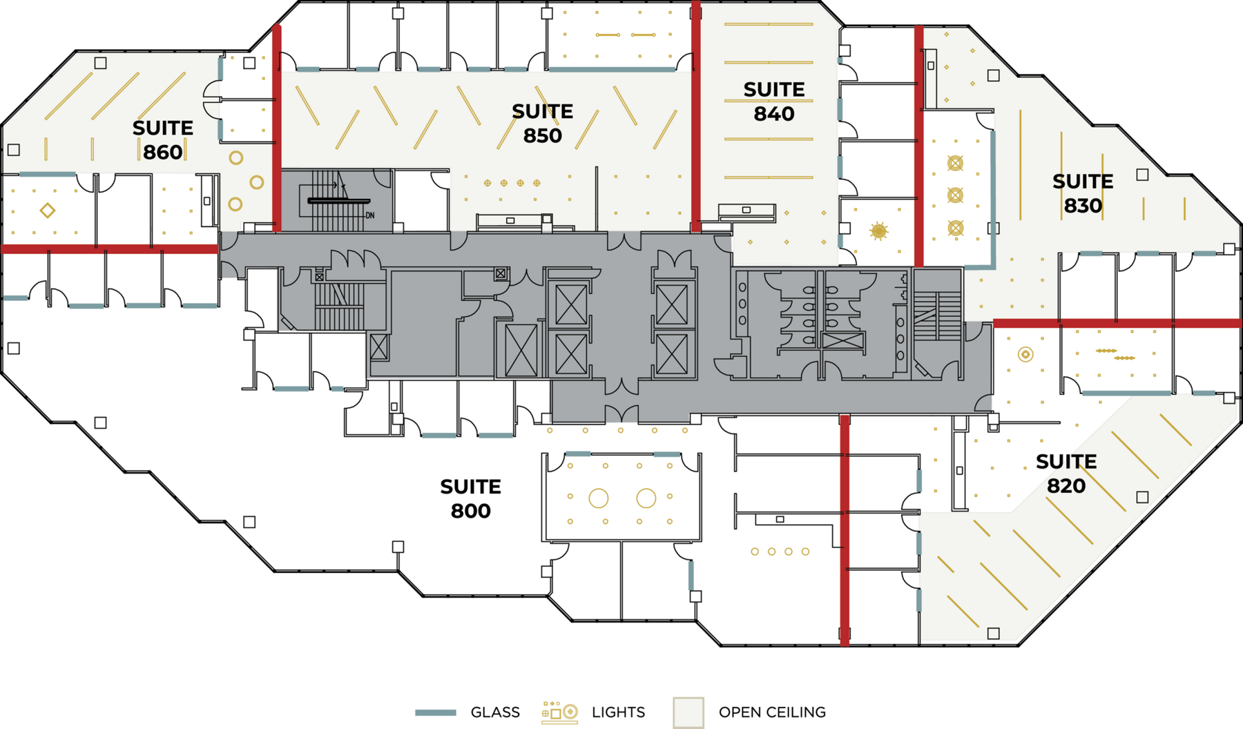 Suite 850 is a new workspace on the amentiy-rich Irvine Towers campus. This suite’s impressive entry and kitchen spaces, both with open ceilings, modern lighting, and polished concrete floors create an stylish feel throughout.