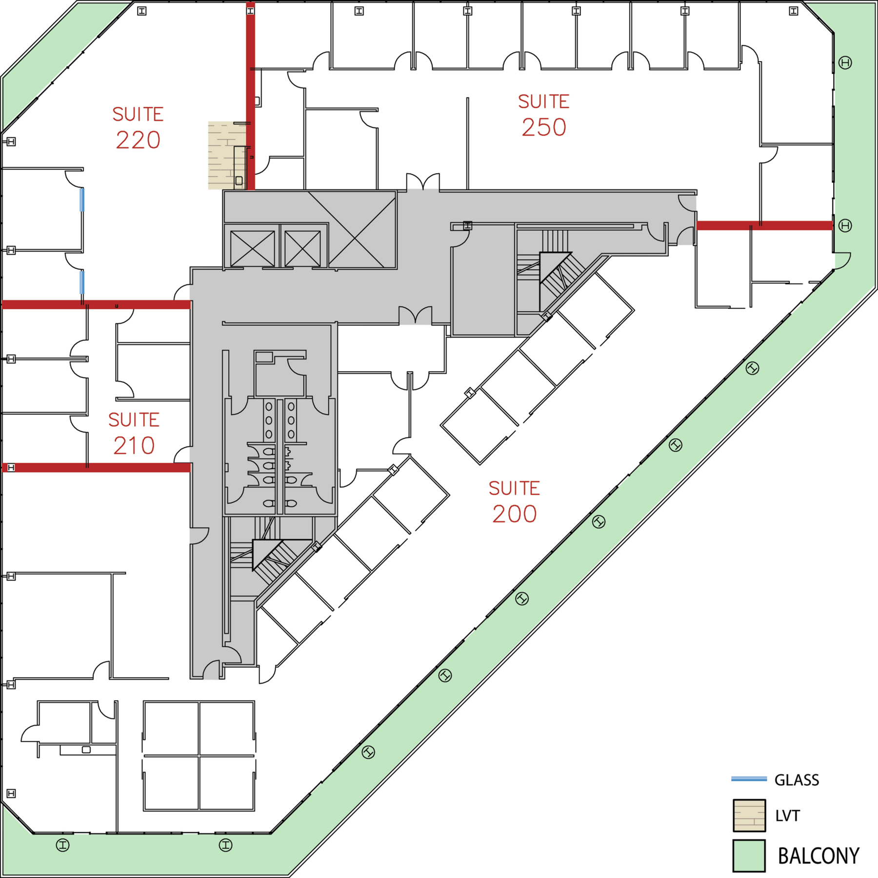 This well-appointed suite features five private offices and access to a range of on-site conveniences and amenities including brand new outdoor workspace and a new meeting and event space.