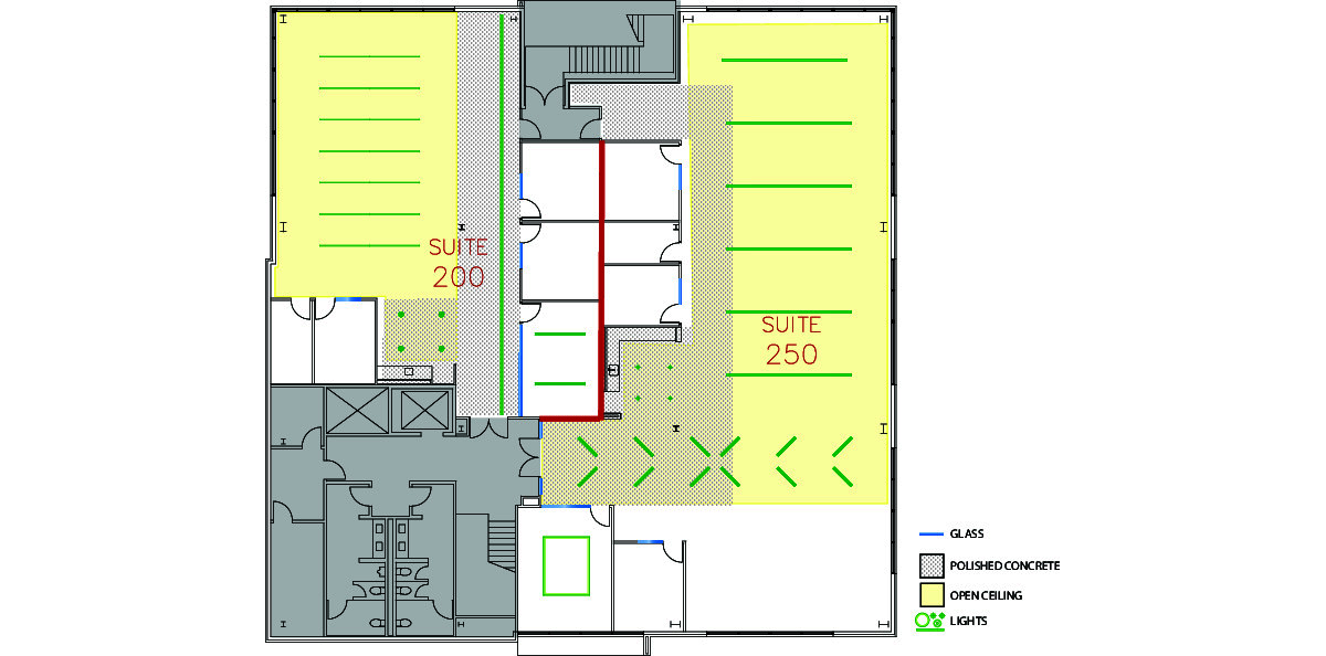 This corner office features operable windows for abundant natural light and fresh air, polished concrete floors, an open ceiling and modern finishes. Teams can access 24 acres of open space, on-site dining and a private indoor/outdoor fitness center.